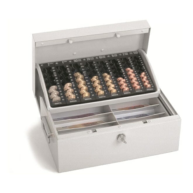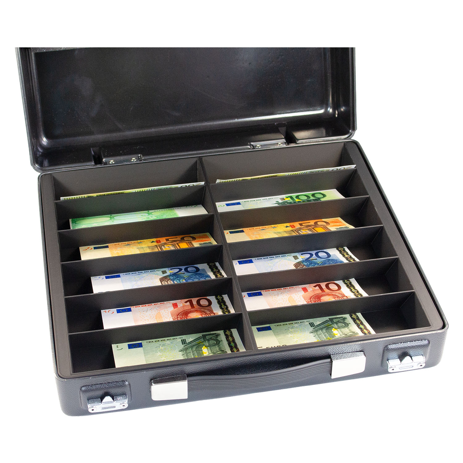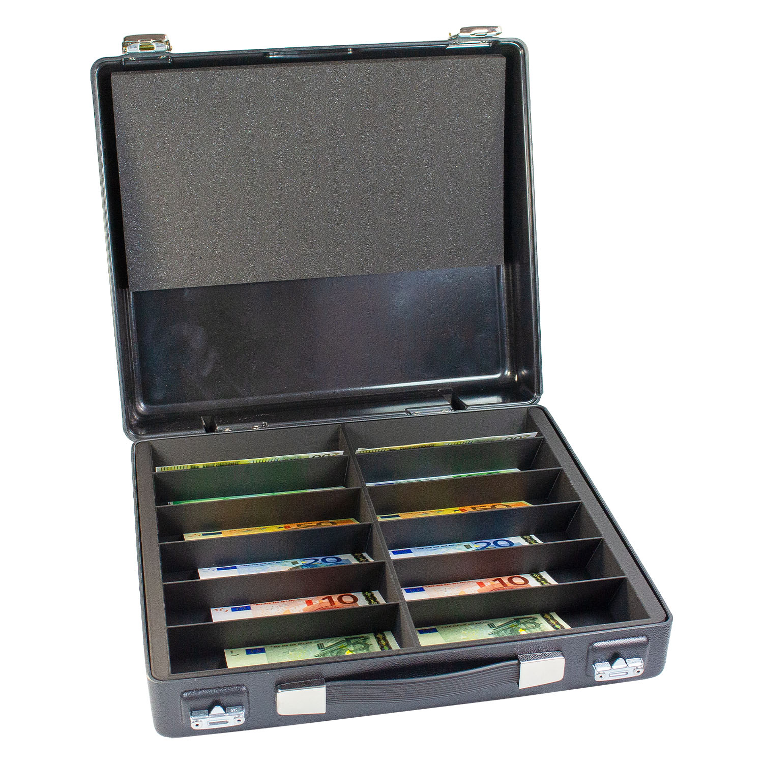 Cash transport case 12 PK/VS with 12 banknote compartments. Removable lid.